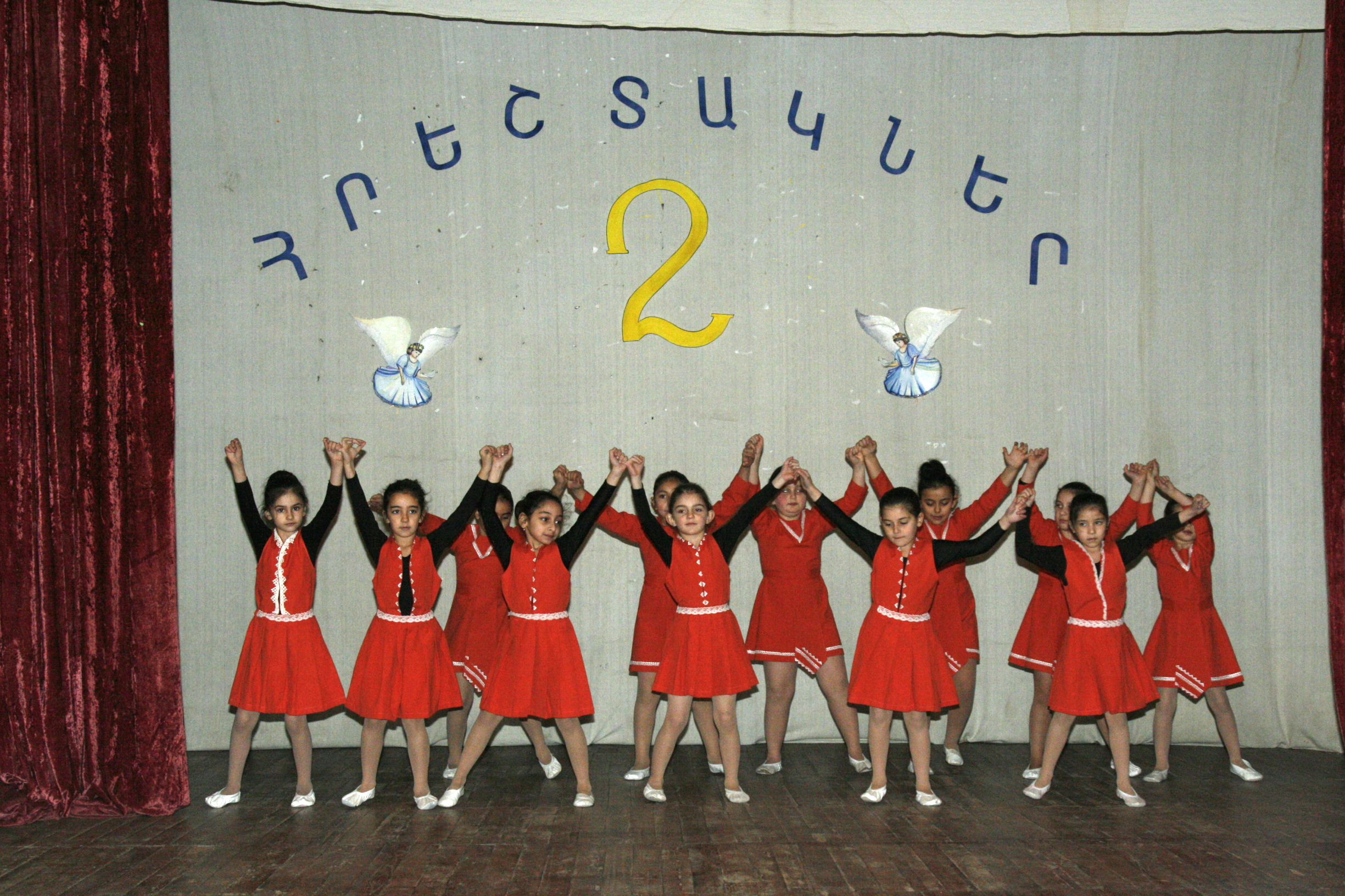 Օրերս լրացավ Գեղագիտական դաստիարակության ազգային կենտրոնի Մեղրիի մասնաճյուղի «Հրեշտակներ» պարի համույթի երկու ամյակը: Այդ հոբելյանին էր նվիրված դեկտեմբերի 19-ին կենտրոնի դահլիճում կայացած համերգը: Համույթի 3 տարիքային խմբերի սաները ներկայացրեցին մոտ քսան պարային բեմադրություններ՝ մի շարք հայկական, ինչպես նաև ռուսական, գնչուական, լատինական պարեր: Պարային համարները ընդմիջվում էին կենտրոնի նորաբաց դաշնամուրային խմբի սաների կատարումներով: Համերգն ավարտվեց երեք խմբերի միասնության շուրջպարով: Հանդիսատեսը գնահատեց այն դժվարին աշխատանքը, որ կատարել էին պարուսույց Աստղիկ Խառատյանը, կենտրոնի տնօրինությունը և ողջ աշխատակազմը: