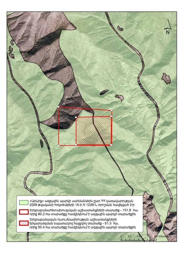 «Արևիկ» ազգային պարկի տնօրեն Գ.Գևորգյանը, պարկի քարտեզների մասին մեր հարցին պատասխանեց, որ պարկի տարածքից կառավարության որոշումով հանվել են որոշակի տարածքներ և իրենք չունեն «Արևիկ» ազգային պարկի ճշտված սահմաններով քարտեզներ: Ուստի հանքերևակման տարածքի և պարկի համընկման մասին ստույգ ոչինչ չի կարող ասել, բայց նշեց, որ դեպի այդ տարածք գնացող կածաններն անցնում են պարկի տարածքով: